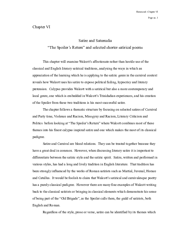 Doc Chapter 6 Classical Influences In The Poetry Of Derek Walcott 2001 Phd Thesis Open University Uk Rhona Hammond Academia Edu